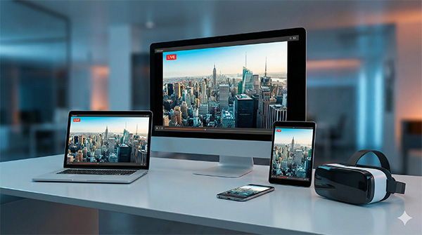PC やスマートフォンはもちろん、VR やデジタルサイネージまで。視聴環境を選ばず、常に最適化されたクリアな映像を届けます。HLS や WebRTC など、最新のプロトコルにも網羅的に対応し、技術の進化に追随します。