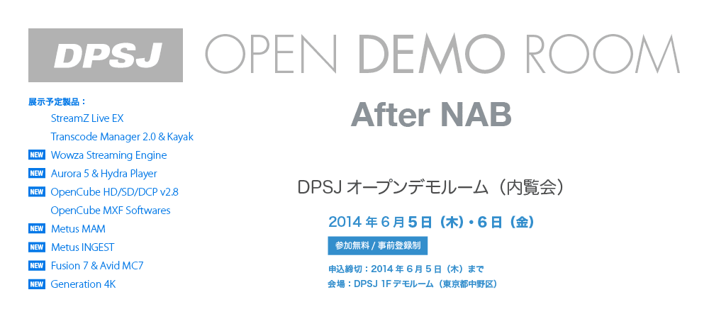 After NAB : DPSJ オープンデモルーム開催 6 月 5 日(木)・ 6 日(金)