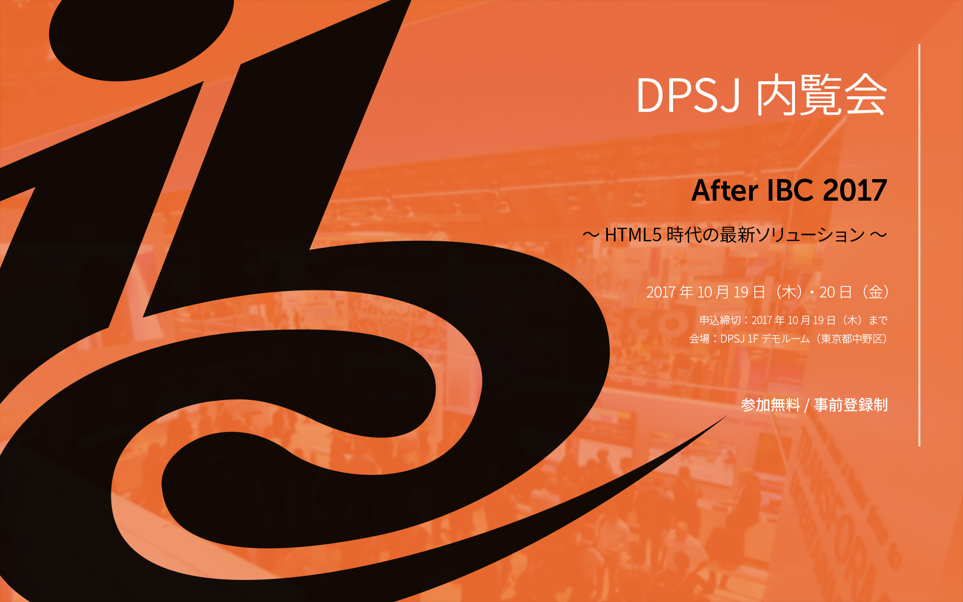 「DPSJ 内覧会 – After IBC 2017 : ~ HTML5 時代の最新ソリューション ~」を開催いたします。